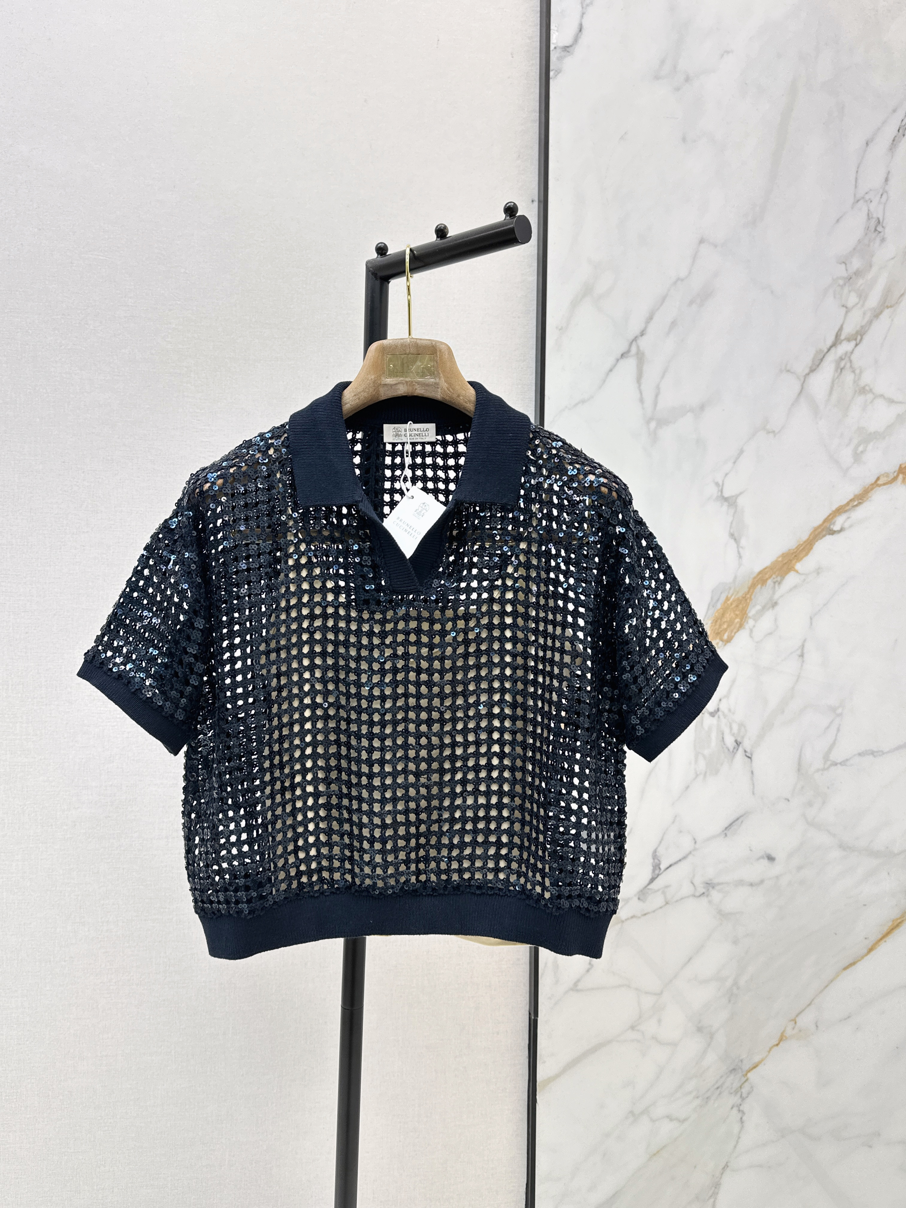 Brun 26ss hollow sequin polo shirt