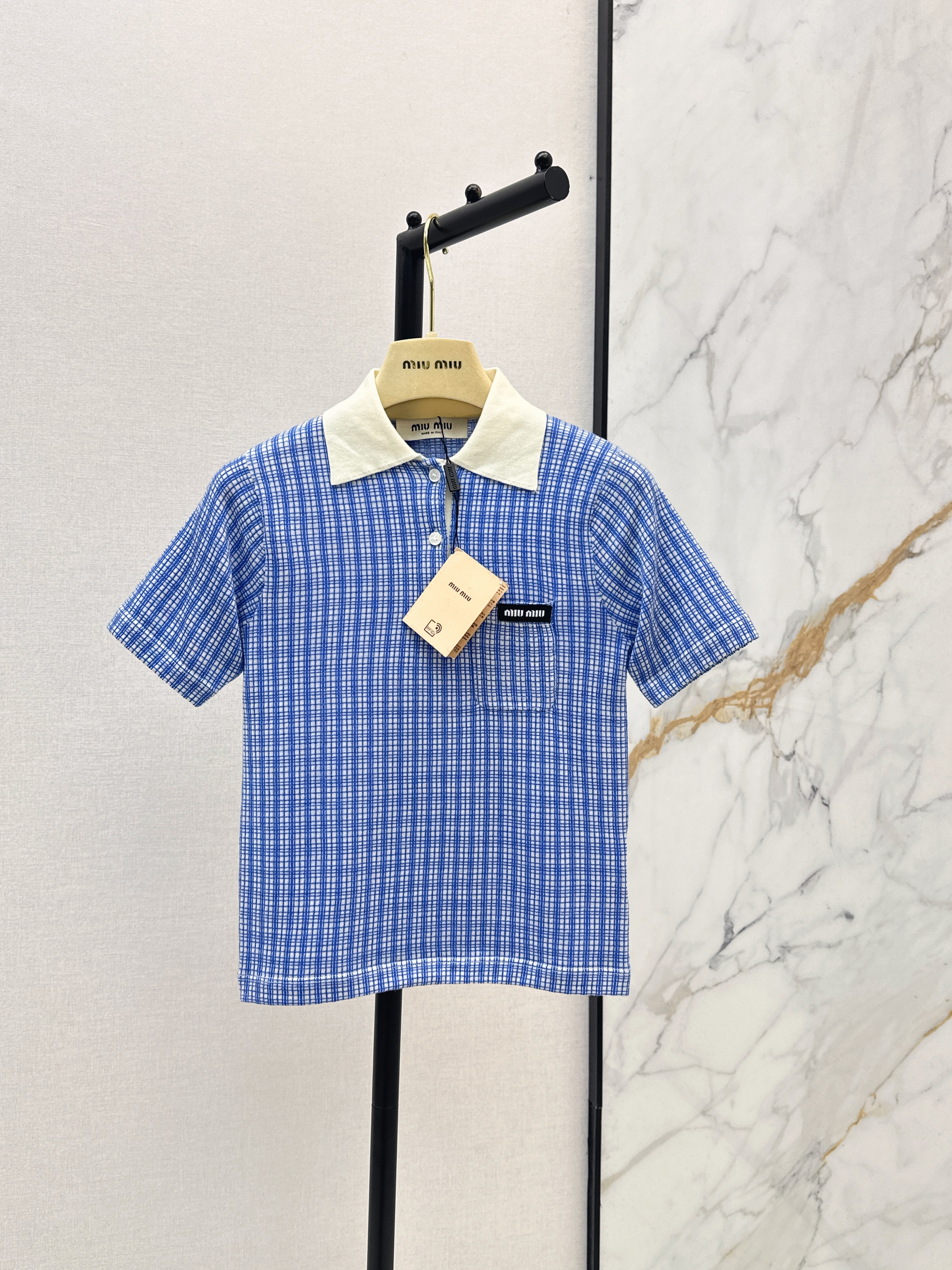 Miu 26ss check polo knitwear