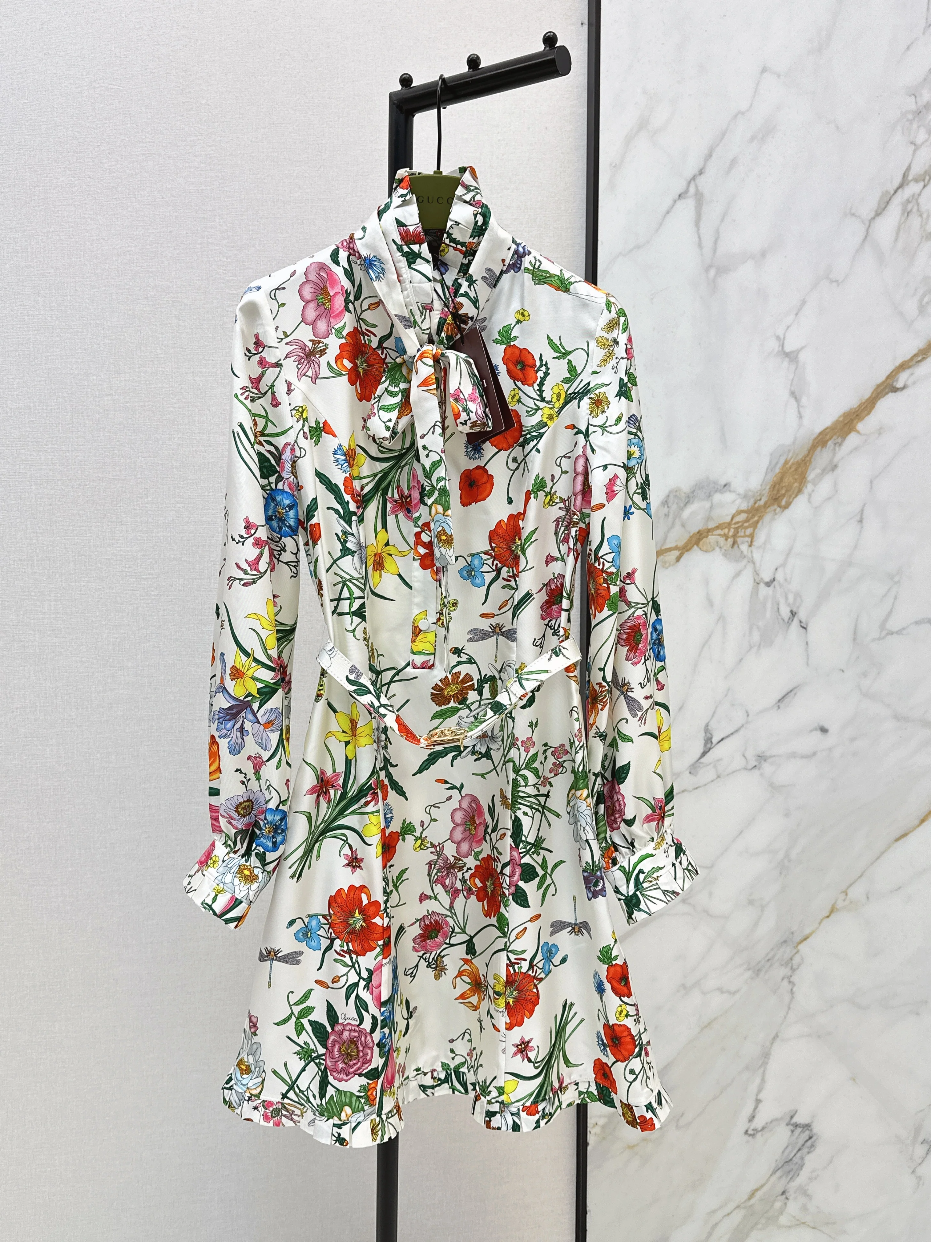Gucc 26ss print flower silk dress