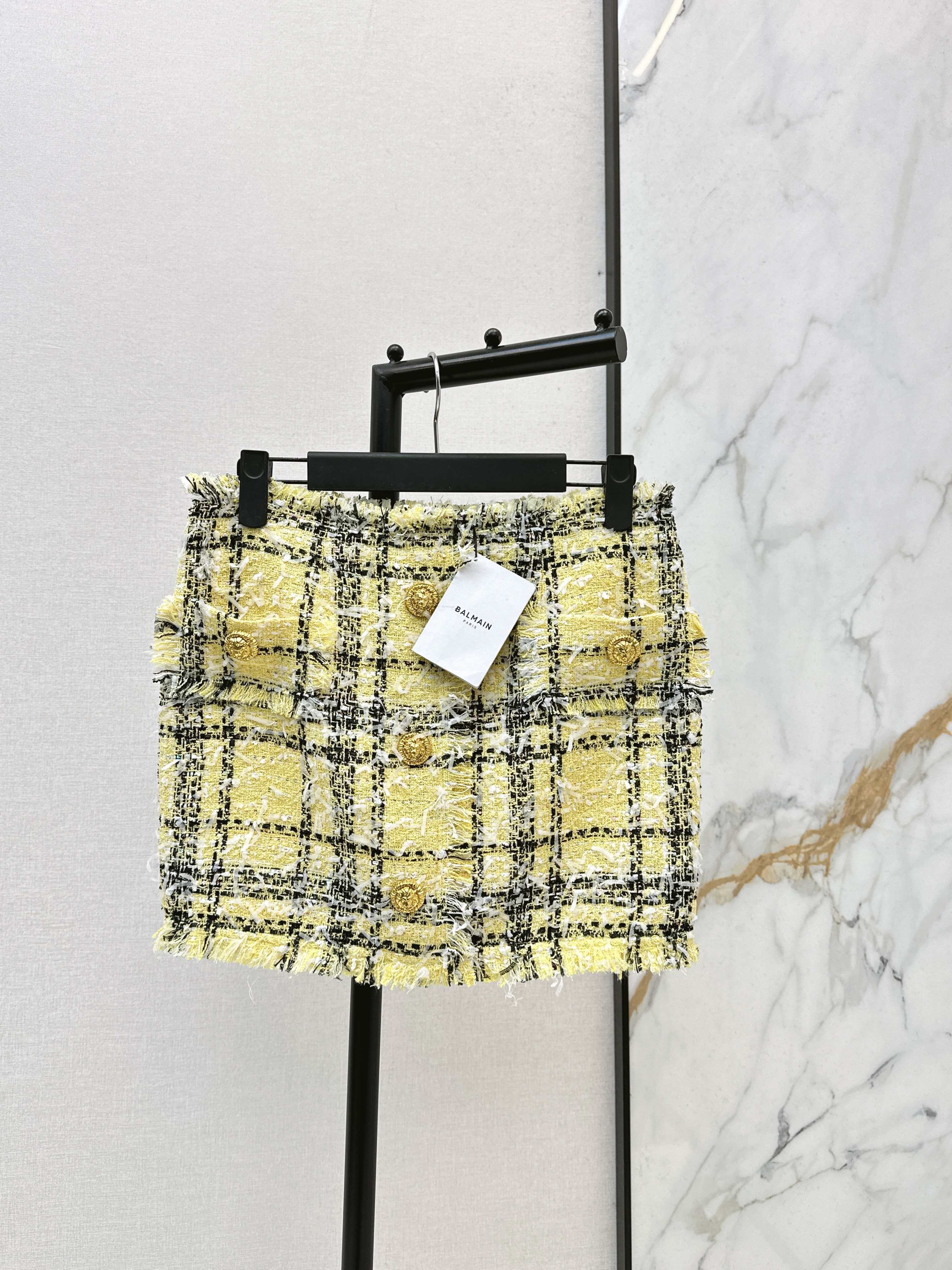Bal 26ss check tweed skirt