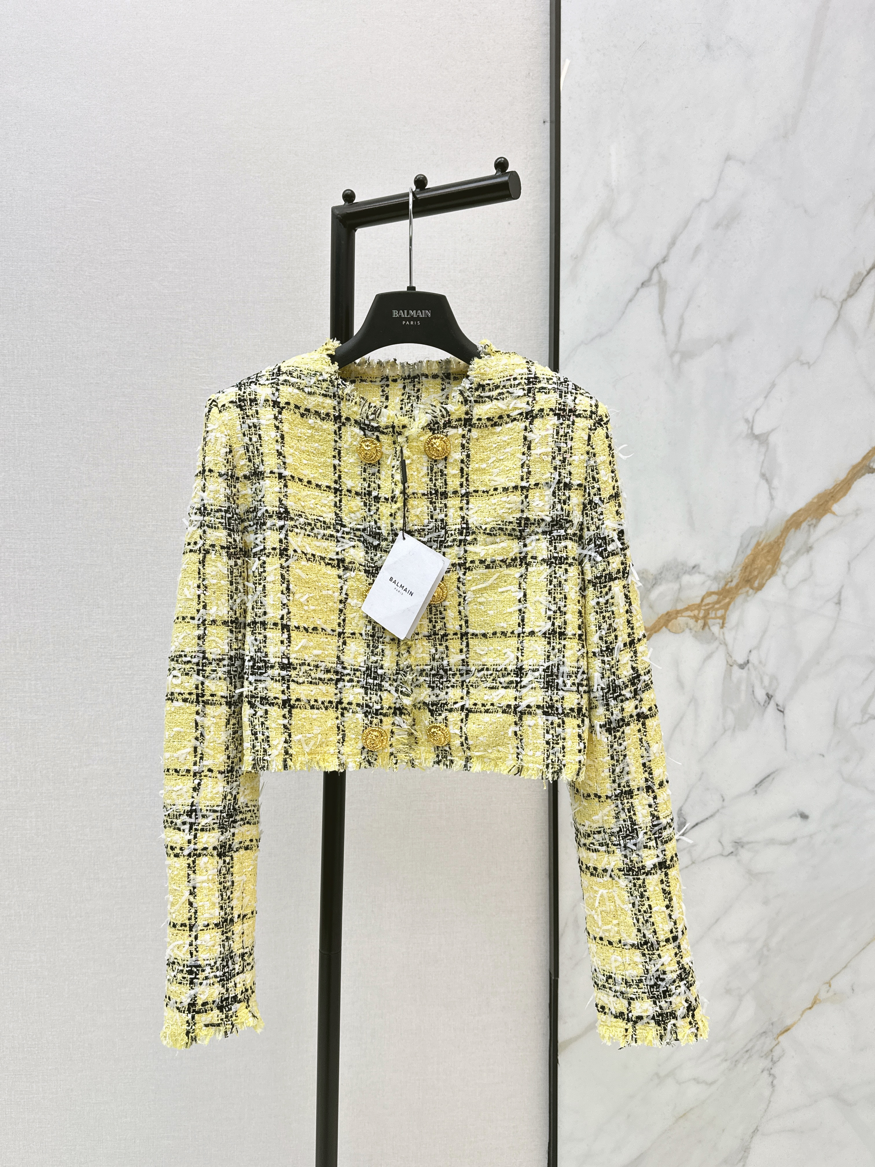 Bal 26ss check tweed jacket