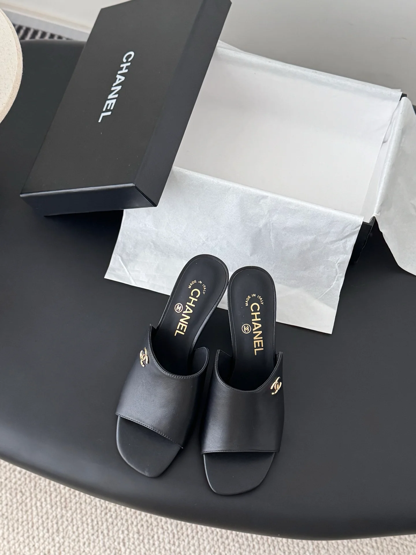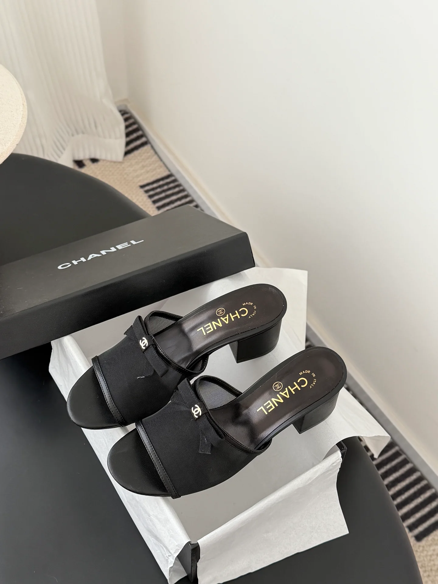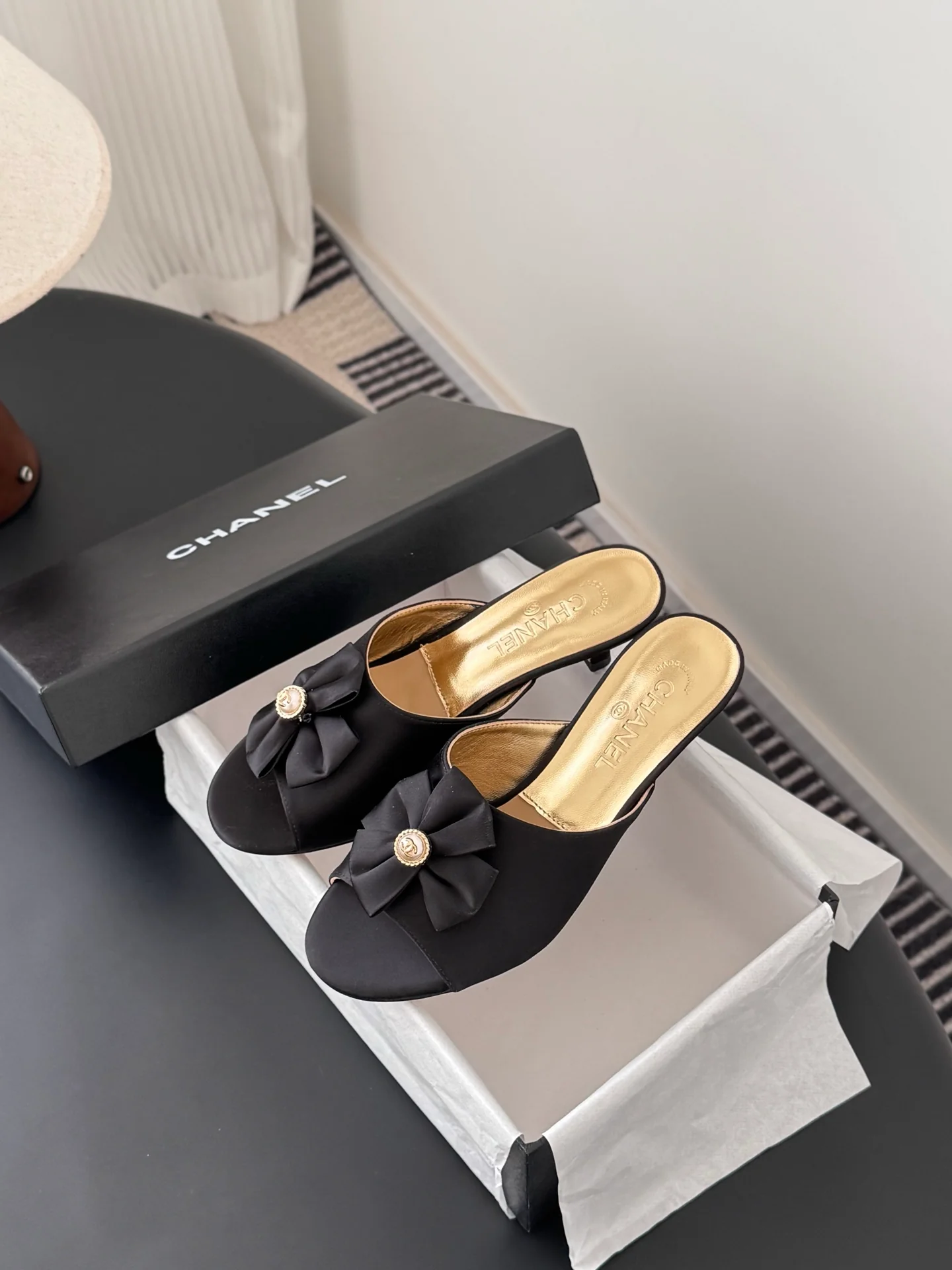 Chan 26ss kitten heel slides