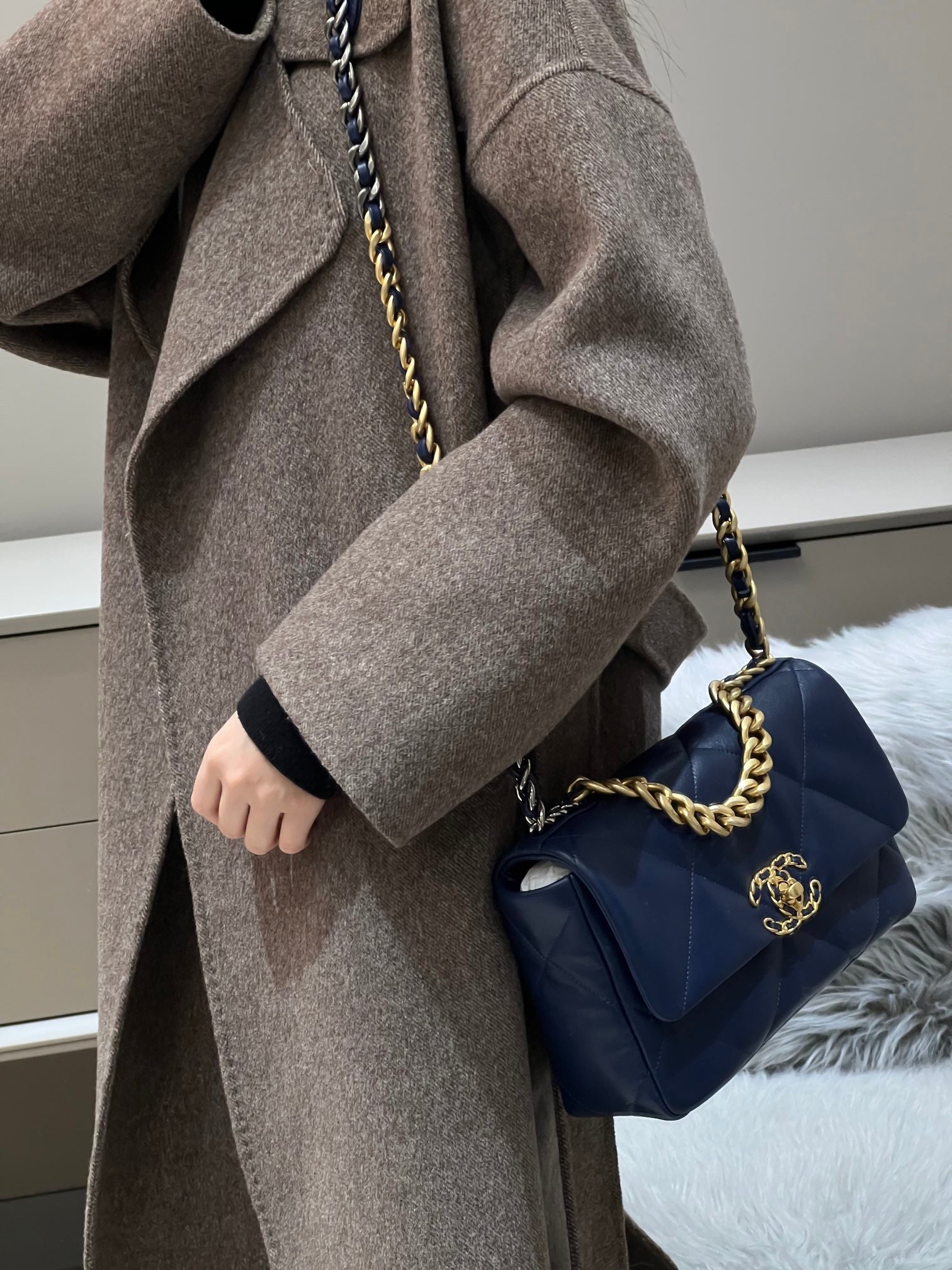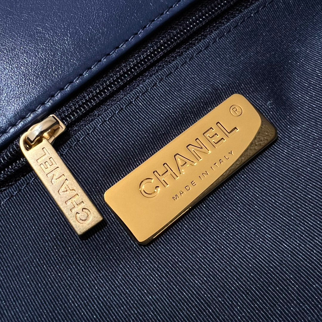 CH 19 HANDBAG 26 Lambskin Navy Blue