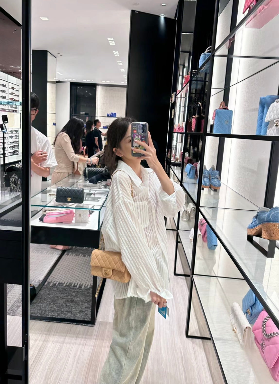 CH CF20 Golden Globe CLASSIC HANDBAG Lambskin Milk tea color