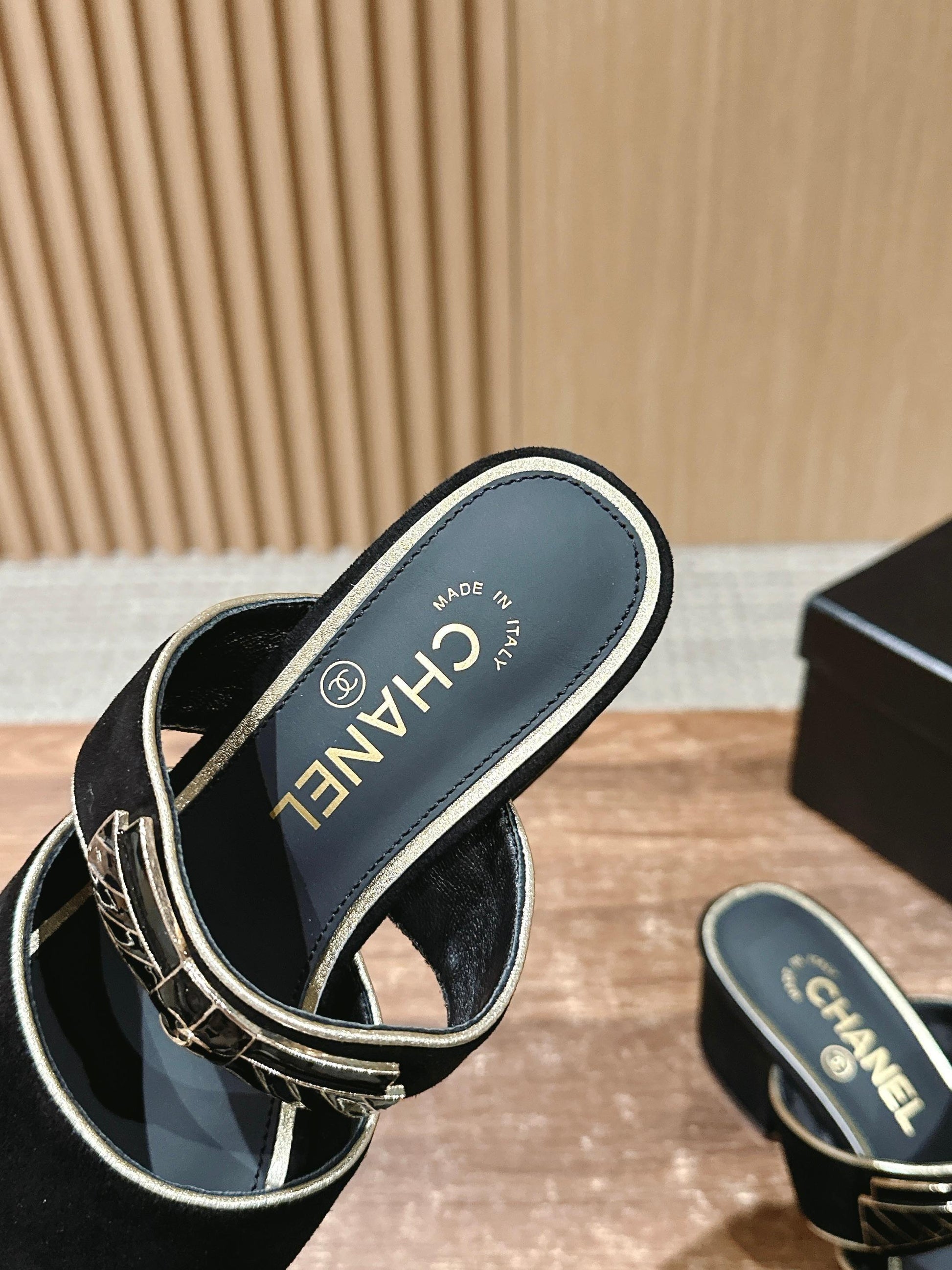 Chan 25fw slides chunky heel