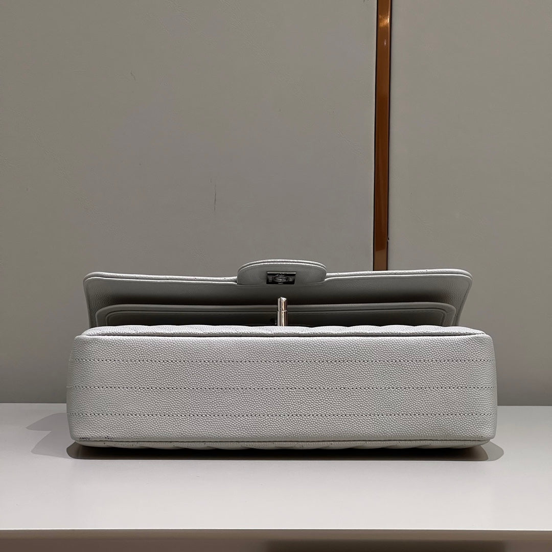 CH CLASSIC 11.12 HANDBAG 25.5 Small Grained Calfskin V Pattern Elephant Gray