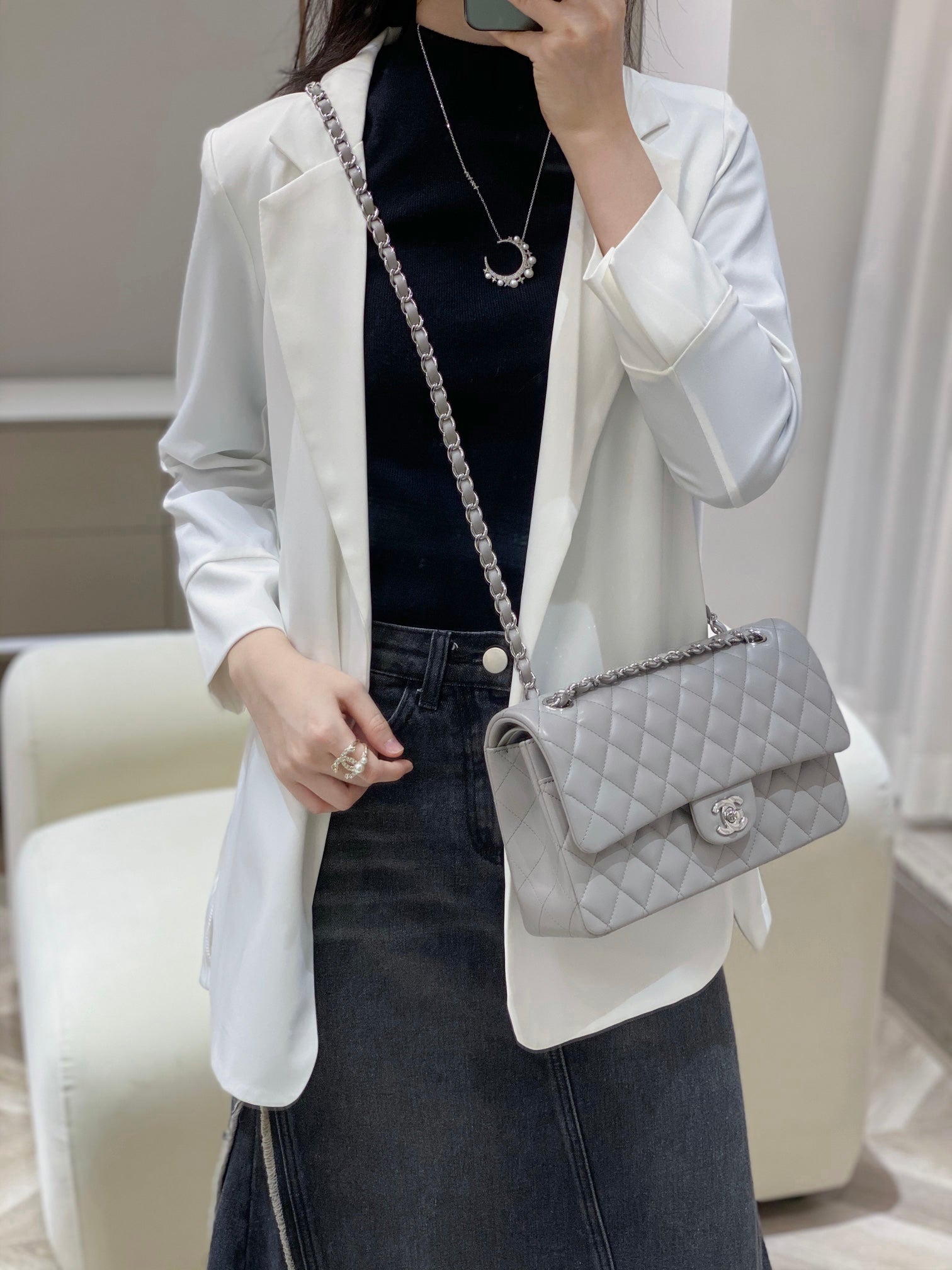 CH CLASSIC 11.12 HANDBAG 25.5 Lambskin Dove Gray