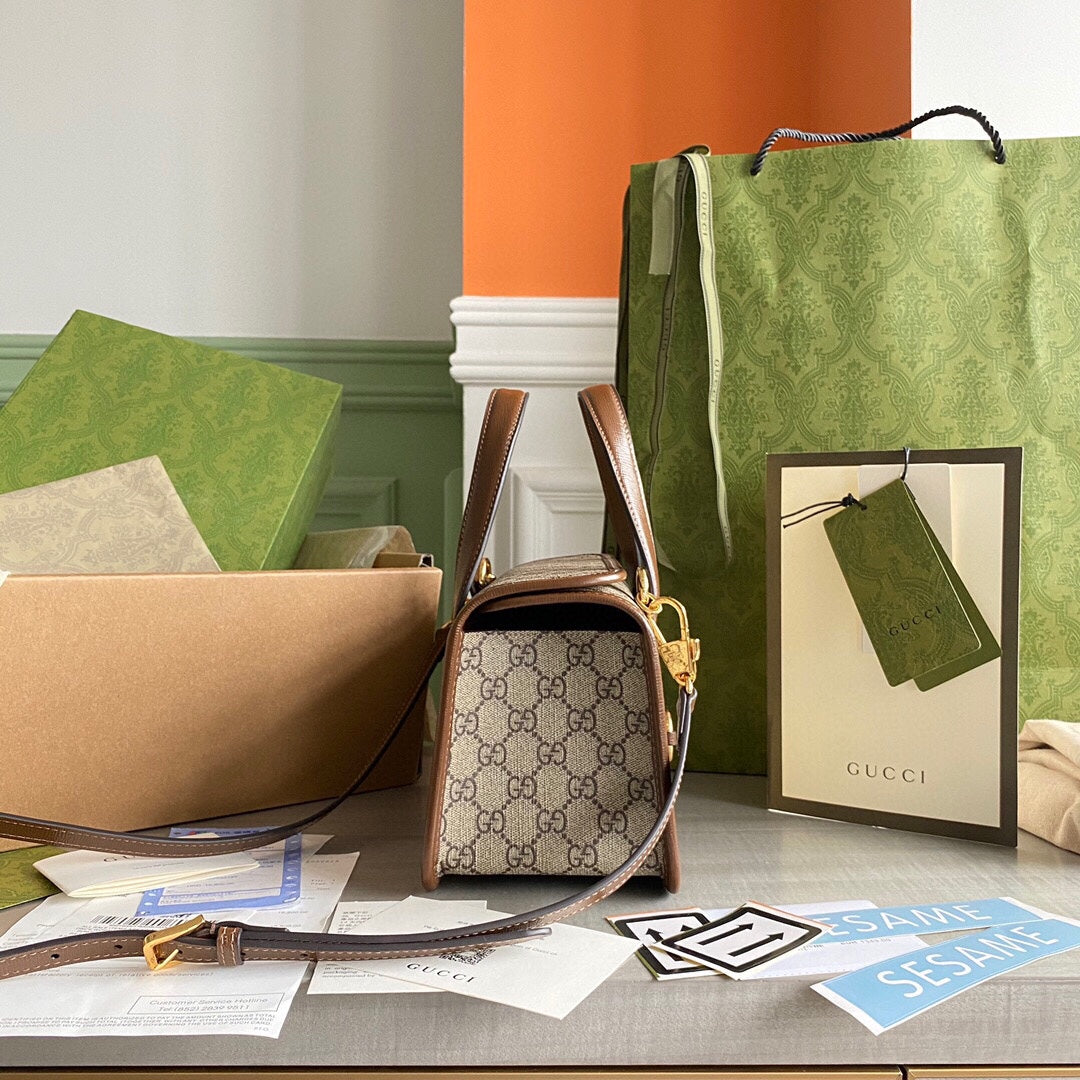 - Beige/ebony GG Supreme canvas, with brown leather trim