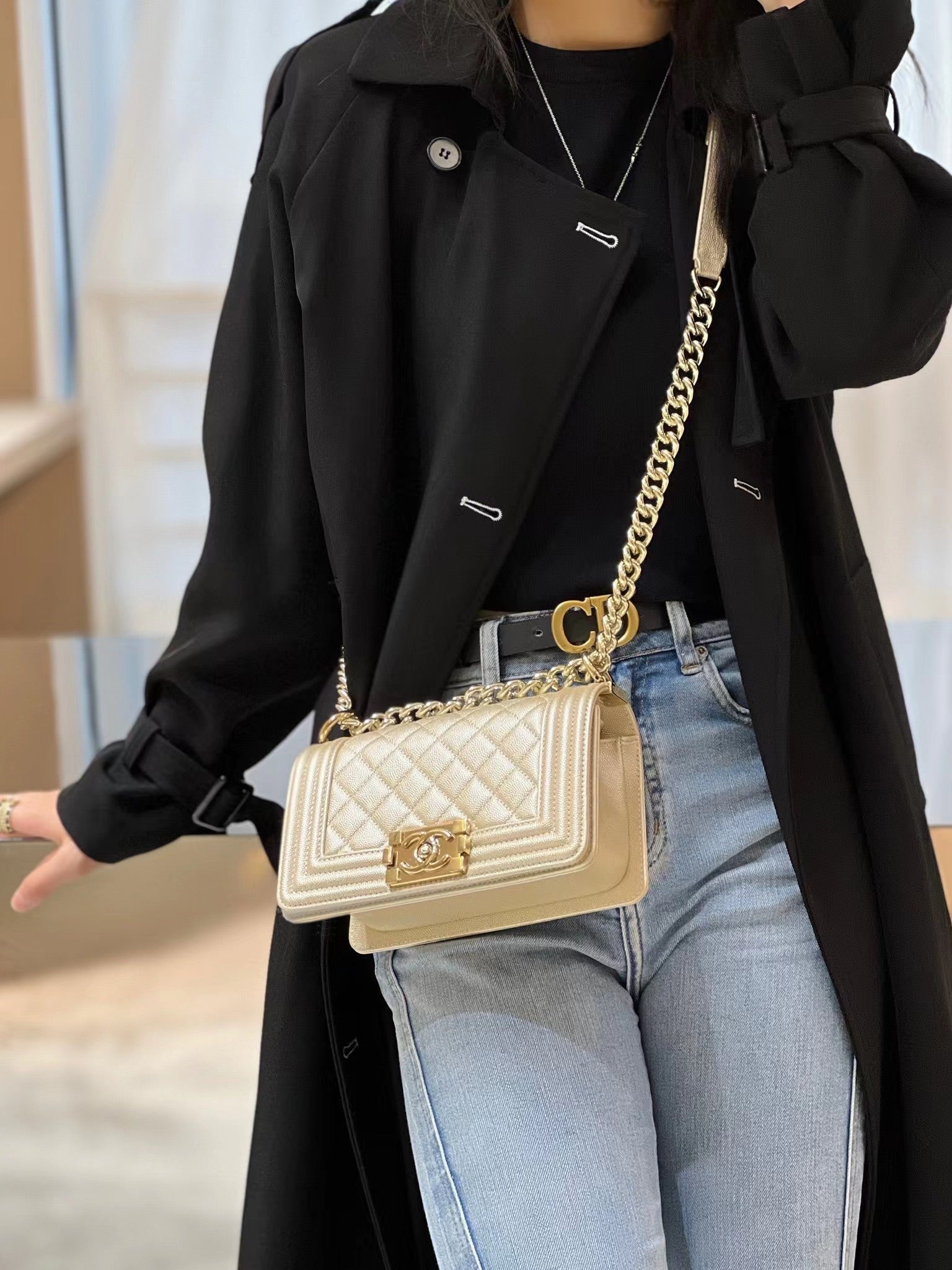 CH SMALL BOY HANDBAG 20 Small Grained Calfskin Champagne Gold