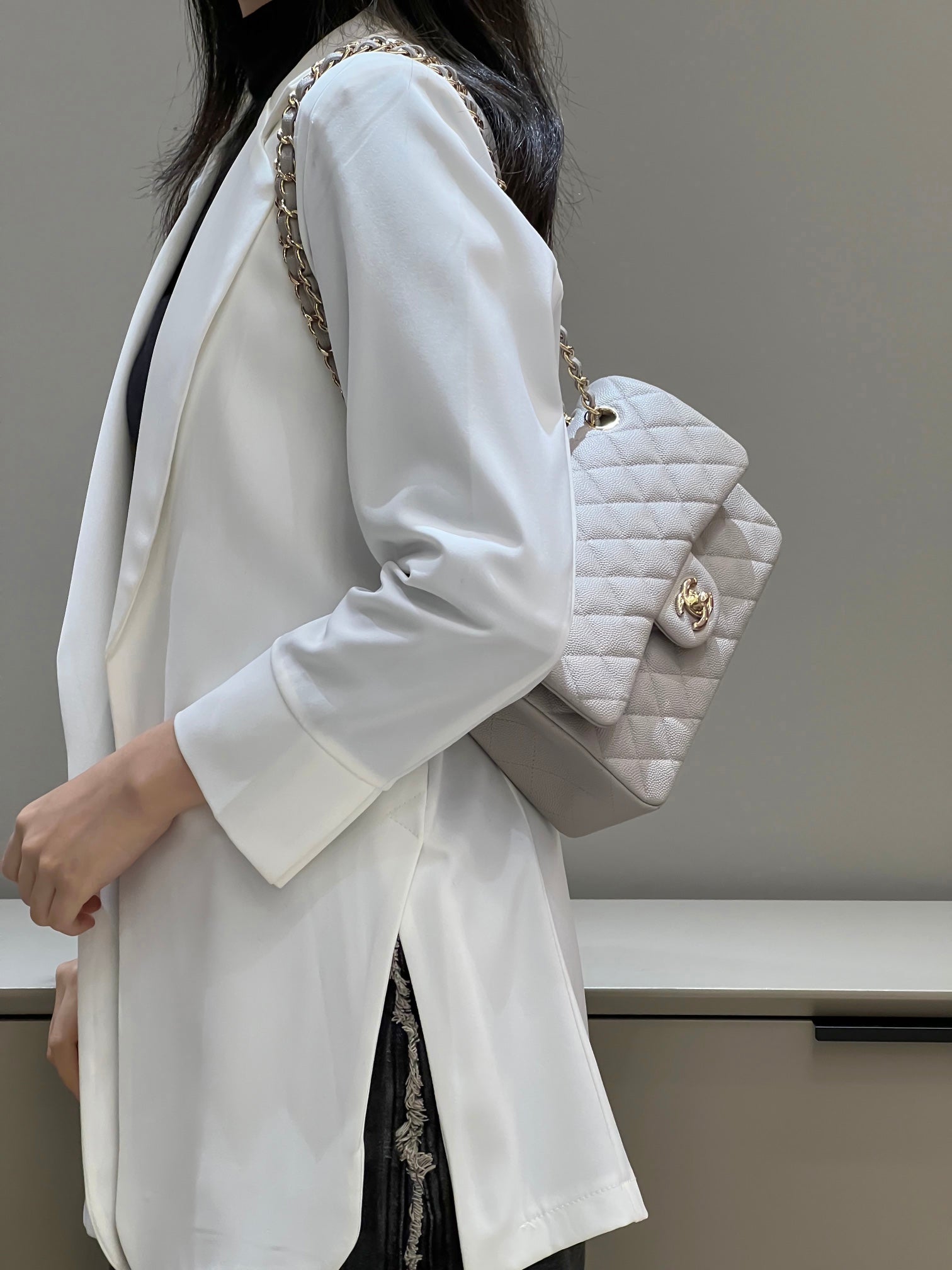 CH SMALL CLASSIC HANDBAG 23 Small Grained Calfskin Elephant Gray